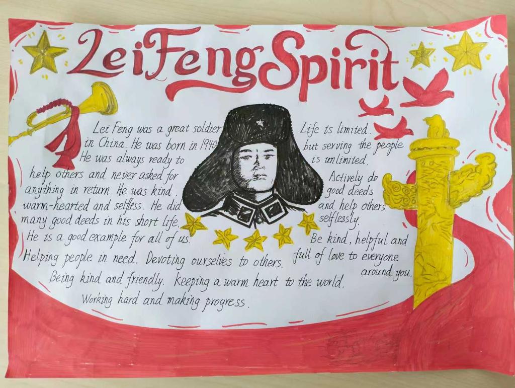 紧扣外语专业特色,学院创新开展 “雷锋精神・多语传扬” 主题多语种手抄报征集活动。鼓励学子充分发挥英、日、韩、泰等多语种优势,以文字、插画、排版相结合的方式,用专业语言讲述雷锋故事、诠释奉献理念,实现红色精神与专业知识的深度融合。同学们踊跃参与、匠心创作,提交的作品不仅图文并茂、语言规范、创意十足,既全面检验了专业学习成果,更让雷锋精神在多语种的生动表达中焕发新时代活力