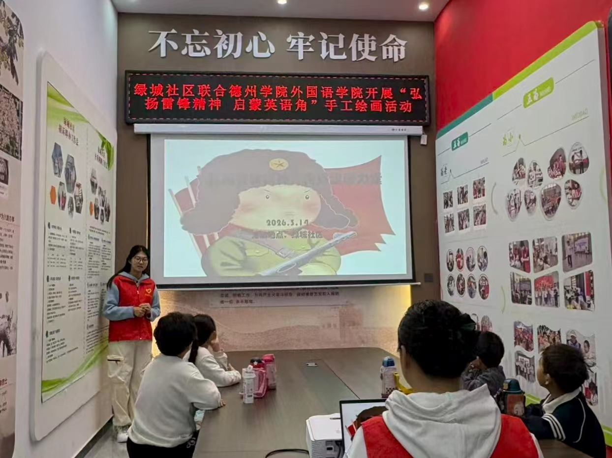 3月14日,学院“小语滴・大世界”志愿服务队走进绿城社区,开展“弘扬雷锋精神·启蒙英语角”志愿服务活动。志愿者们结合专业所长,围绕雷锋精神与志愿服务主题,通过趣味游戏、情景对话、动画观影等形式,为社区儿童讲解 “volunteer”“kind”“help”等核心英语词汇与相关表达,有效提升了孩子们的英语学习兴趣;同时组织开展雷锋主题手抄报绘制活动,让孩子们在动手实践中感悟雷锋精神的内涵。活动以专业能力赋能社区服务,既为社区少儿英语启蒙提供了有力支持,更彰显了外院志愿服务的专业价值与青春温度。