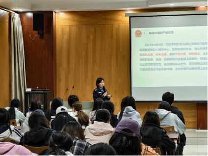 民警结合真实案例,重点解析了“兼职刷单”、“冒充客服退款”、“冒充熟人”、“游戏交易诈骗”、“网络贷款”等常见骗局的作案手法和话术套路,揭示了诈骗分子如何利用学生求职心切、追求实惠等心理,步步设套,最终导致财产损失的过程,给在场同学敲响了警钟,她告诫同学们务必牢记“不轻信、不透露、不转账”的原则,对任何涉及资金往来的要求保持高度警惕,并通过官方渠道多方核实。民警着重讲解了“帮信罪”(帮助信息网络犯罪活动罪)和《中华人民共和国反电信网络诈骗法》的相关规定。她强调,严禁出租、出借、出售个人电话卡、银行卡,或为他人“刷流水”提供帮助等行为,即使未直接参与诈骗,也可能构成违法犯罪,成为电信诈骗的“工具人”,将面临法律惩处。她呼吁同学们不仅要自己远离诈骗,也要守法自律,绝不触碰法律红线。